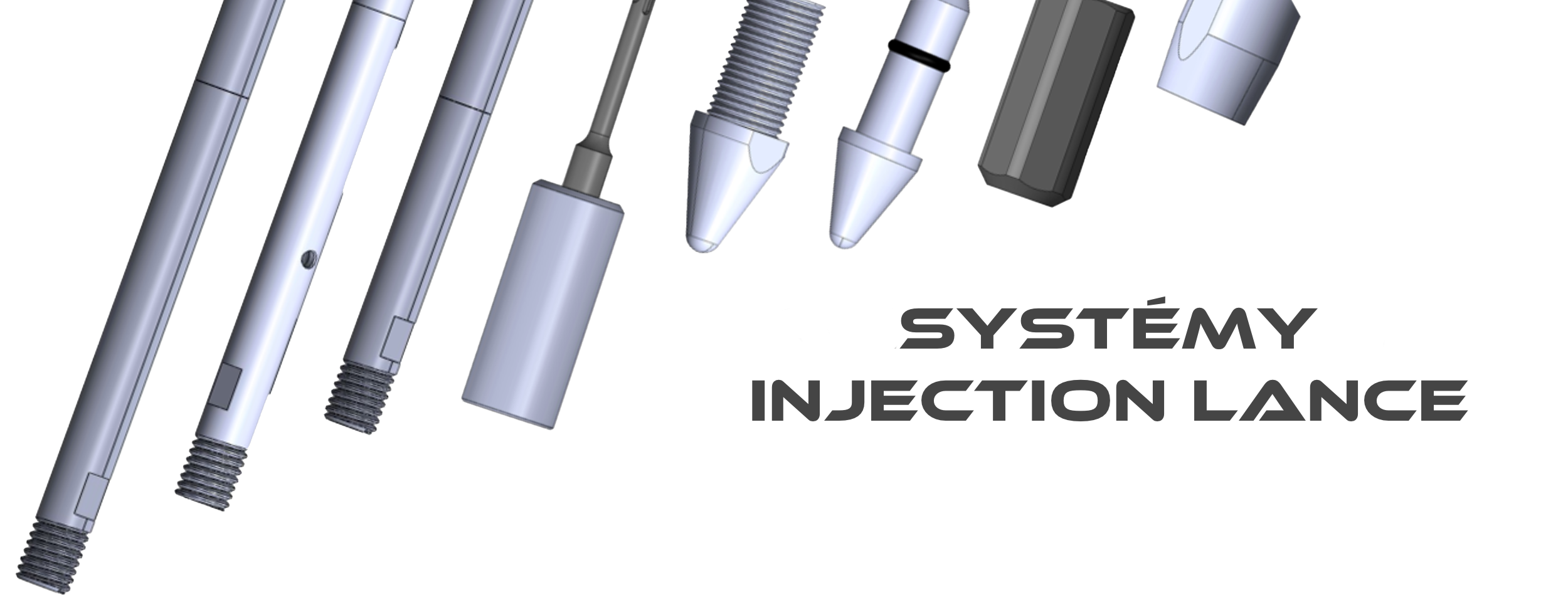 Vstřikovací trysky systému Hammpack JG-SYSTEM, s plnými a děrovanými sekcemi 500 mm a 1000 mm. Vyvážená struktura povrchu vstřikování pro cementové suspenze, geopolymery, akrylové gely a polyuretanové pryskyřice.