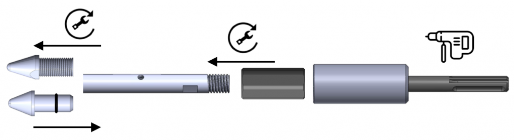 Fixed (screw-in) blade – outlet holes allow injection along the entire length of the perforated lance at the desired section (system compatibility with full injection lance). Fits JG-END-PER injection lance.
