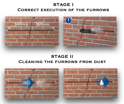 Kun olet tehnyt ankkureiden urat, poista niistä pölyjäämät. Puhdistus voidaan suorittaa ilmalla ja / tai vesisuihkulla.